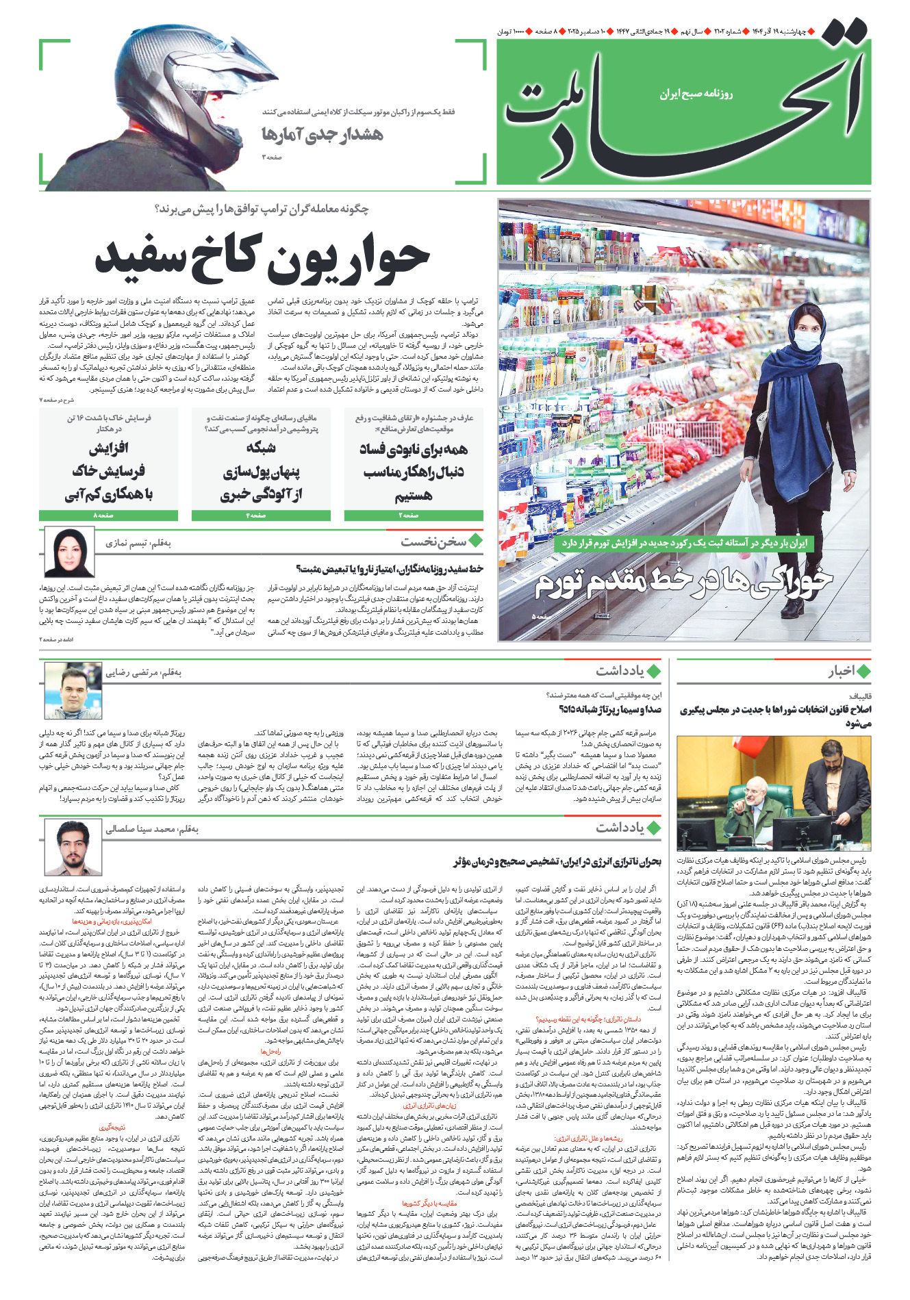 روزنامه اتحاد ملت شماره ۲۱۰۲تاریخ۱۴۰۴/۰۹/۱۹