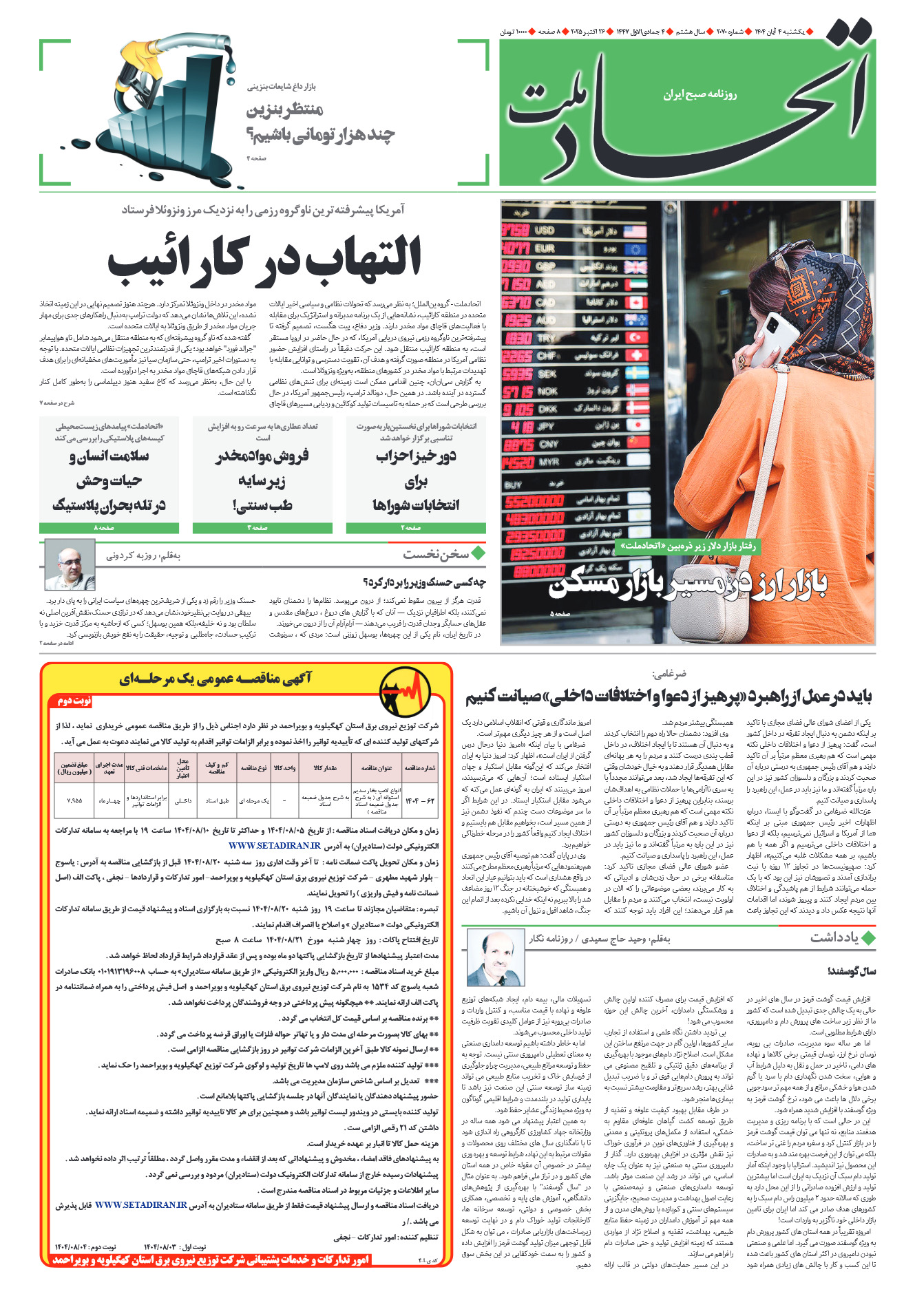 روزنامه اتحاد ملت شماره ۲۰۷۰تاریخ۱۴۰۴/۰۸/۰۴