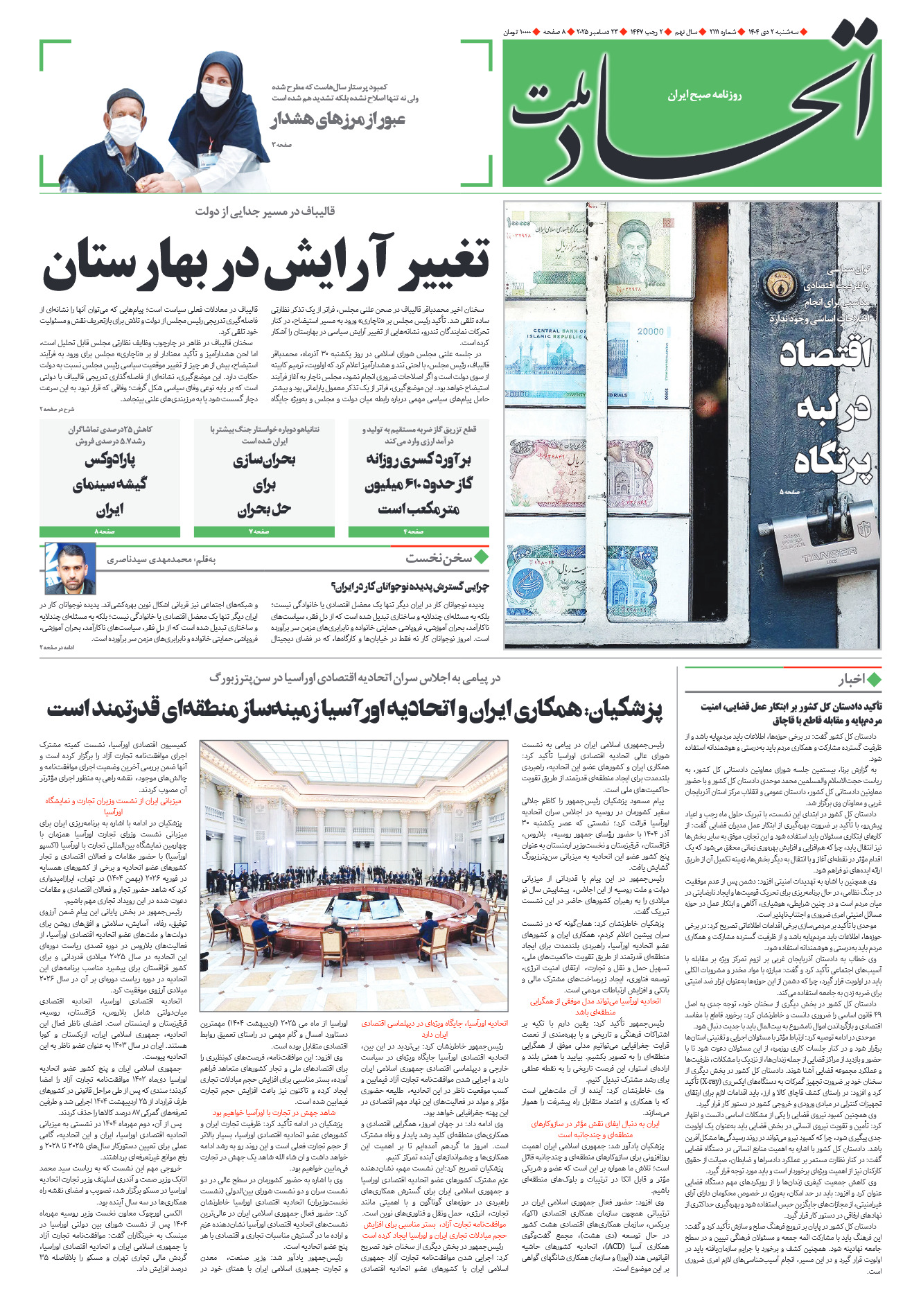 روزنامه اتحاد ملت شماره ۲۱۱۲تاریخ۱۴۰۴/۱۰/۰۲