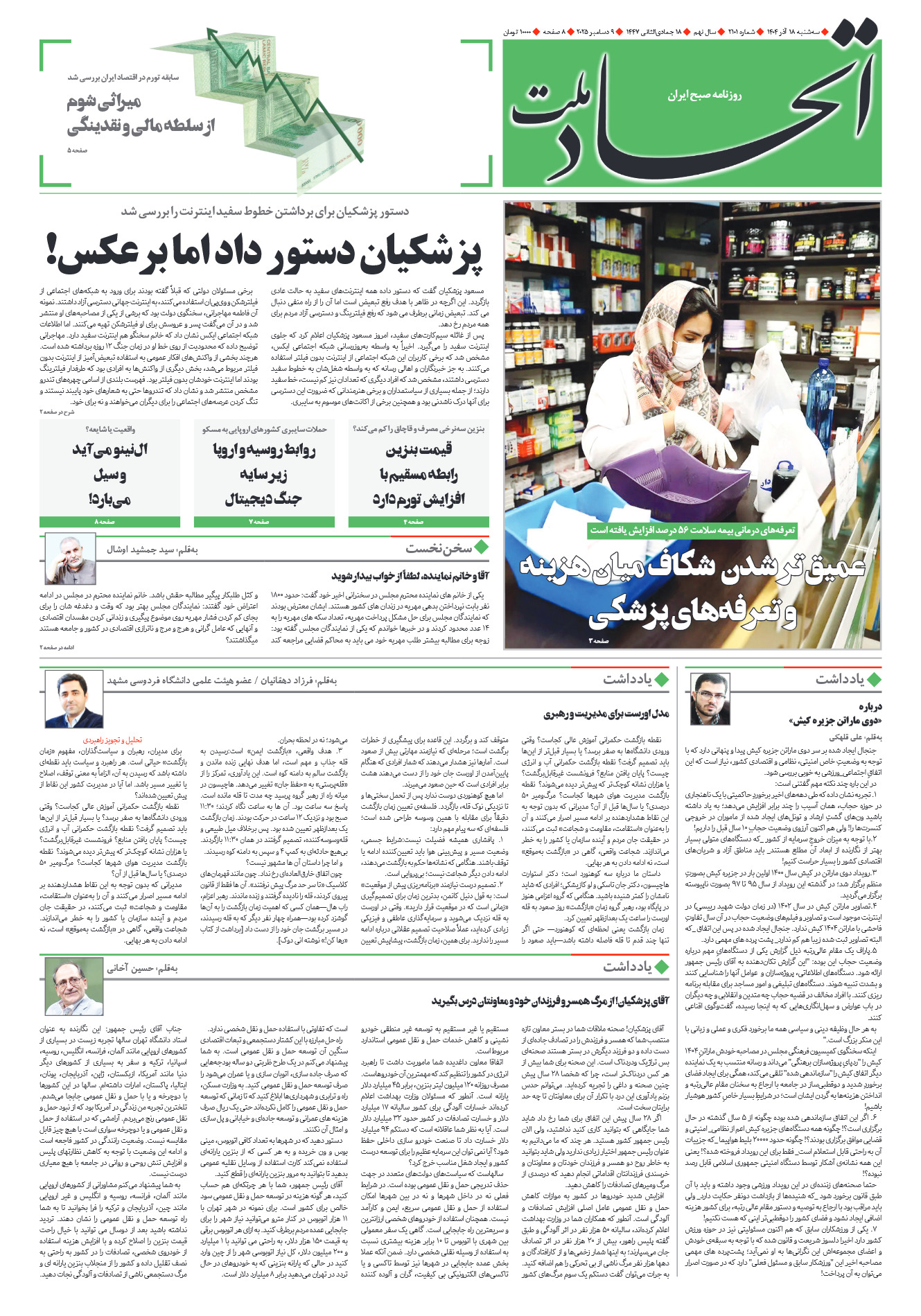 روزنامه اتحاد ملت شماره ۲۱۰۱تاریخ۱۴۰۴/۰۹/۱۸