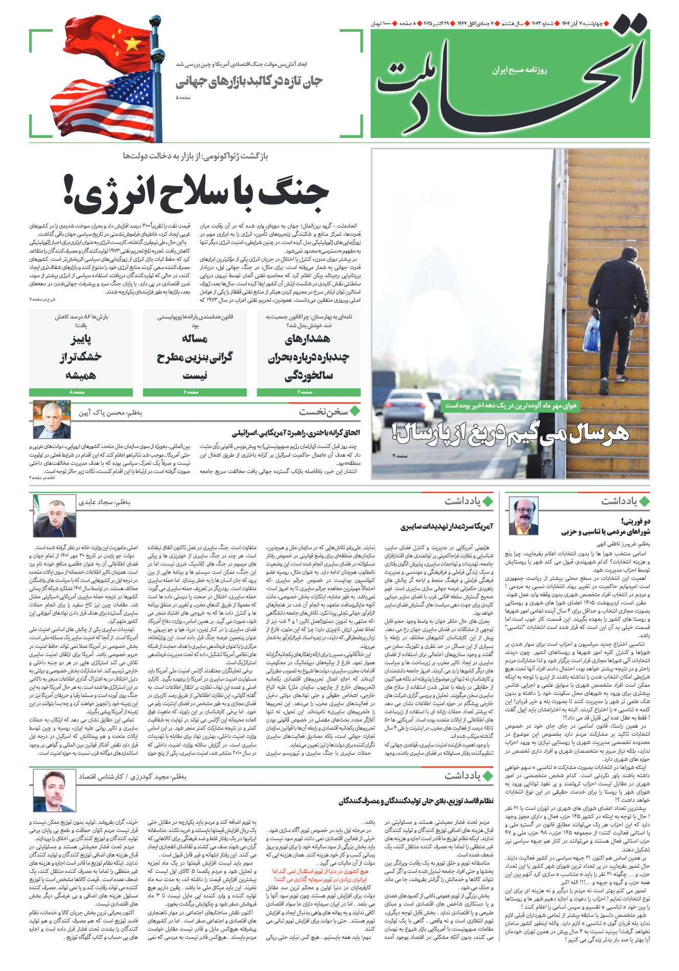 روزنامه اتحاد ملت شماره۱۹۱۱تاریخ۱۴۰۳/۱۲/۰۱